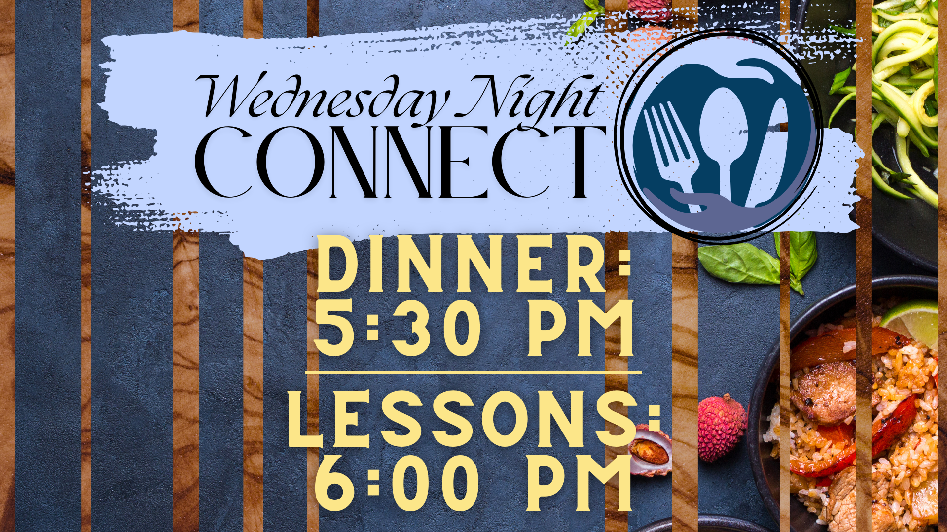 Wednesday Night Connect is where we meet to enjoy fellowship and food then dive into fun lessons lead by the pastors. Kids and Youth are welcome and have lessons tailored to them!