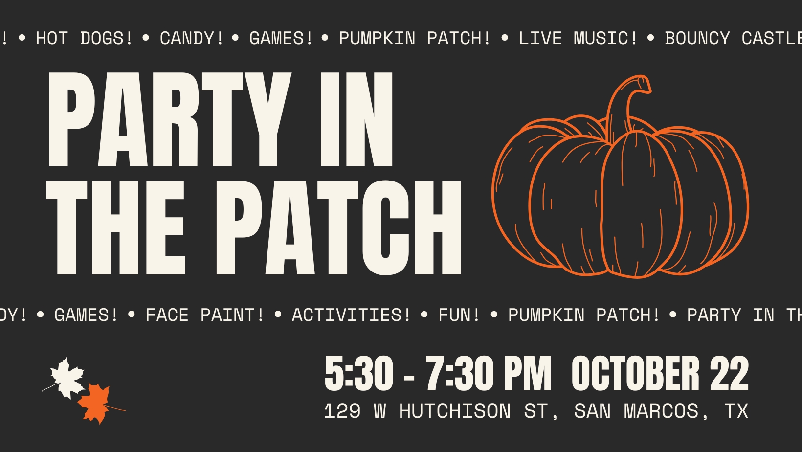 Calling all Pumpkin Heads! We need volunteers to help with our Pumpkin Patch this season! It is a great way to get involved with our community, and there are many times available.Our patchlasts through the month of October. Daily volunteering is available with weekday and Sunday hours from 12pm-8pm and Saturdays from 10am-8pm. Patch clean-up will be November 1.If you have never volunteered for the Patch and don't know what to expect or have other questions call the church office:(512) 392-6001All proceeds of pumpkin sales benefit San Marcos CISD School Fuel.